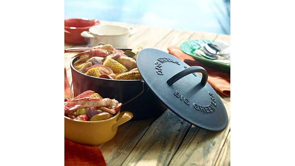 Professional Grade Cast Iron Dutch Oven with Lid. Multi-functional and efficient – the traditional Dutch Oven is a favourite for cooking stews, soups, chilli and cobblers on the Big Green Egg. Ideal for simmering, braising, baking, sautéing and roasting, this Dutch Oven will only improve as it ages! Can be used in Medium, Large and XLarge EGGs. 5.2lt capacity