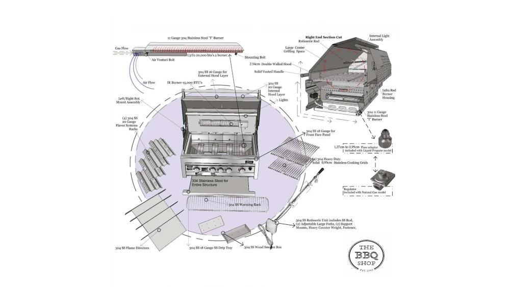 The Sunstone Sun Series 4 Burner Gas BBQ is the perfect centrepiece for any outdoor kitchen. Constructed completely from 304 grade stainless steel which is fully welded for extra durability. This is combined with a double walled hood insulates perfectly and is finished with stylish polished accents.